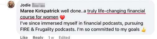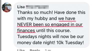 We've been together for about 24 years and are really solid, the only thing we ever fight about is money. We've both type A, but he's more spreadsheets and money management than I am. The mindset portion of the course helped me realise how much I spend on others when I really don't need to.